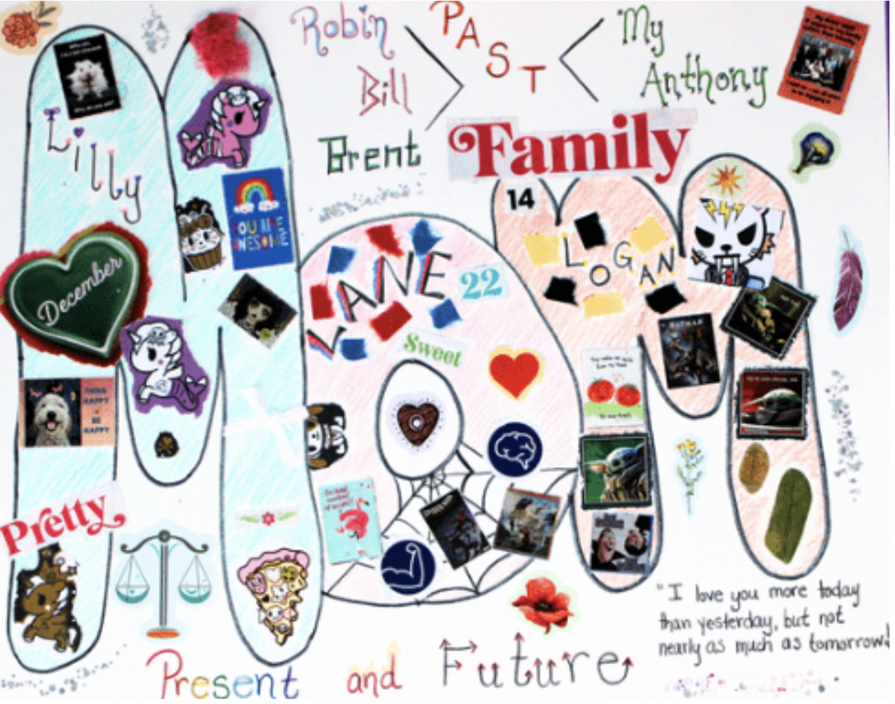 This piece was done collage- style to accentuate the individuality of each of my children.