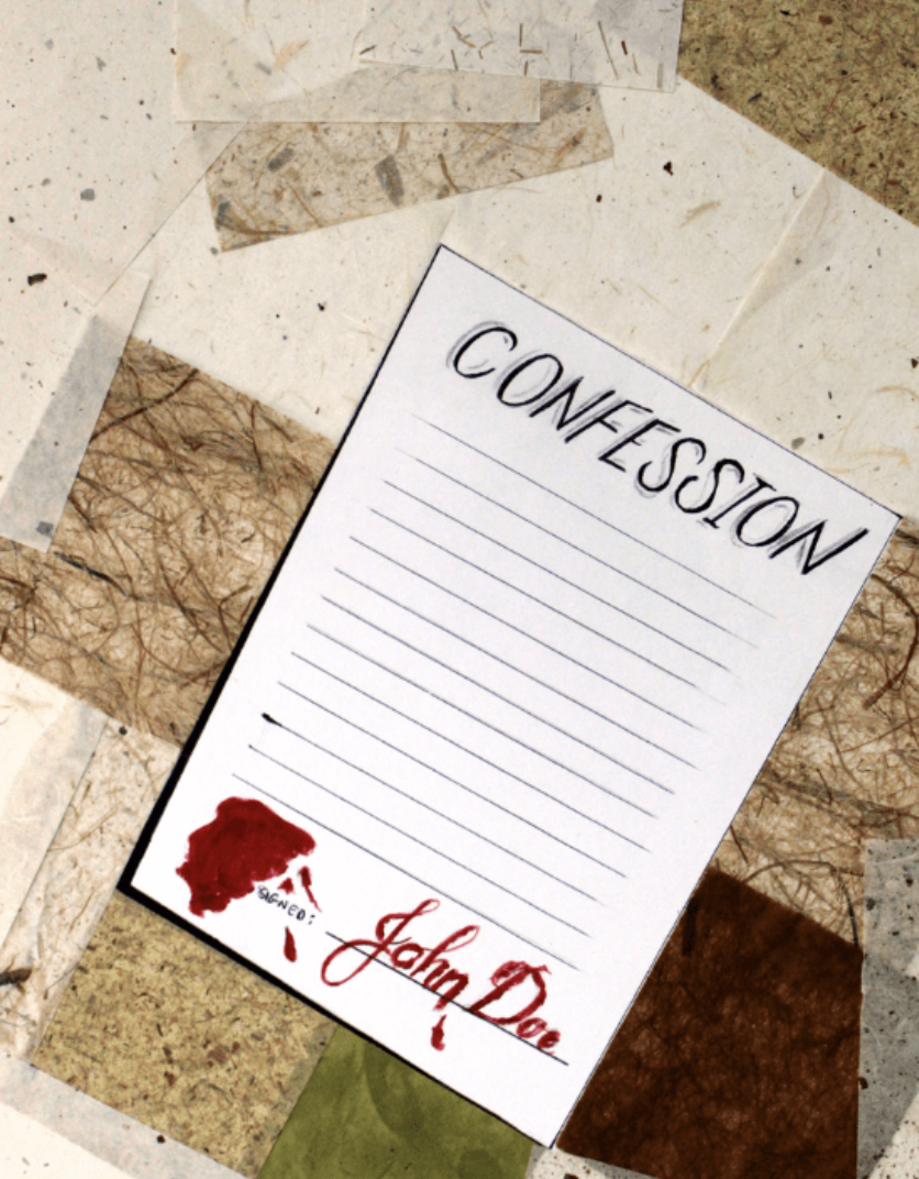 This work is simply a confession that is blank yet says so much because, though we may say nothing,our silence can and will be used against us!